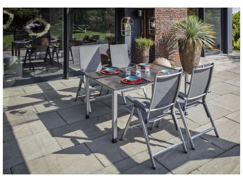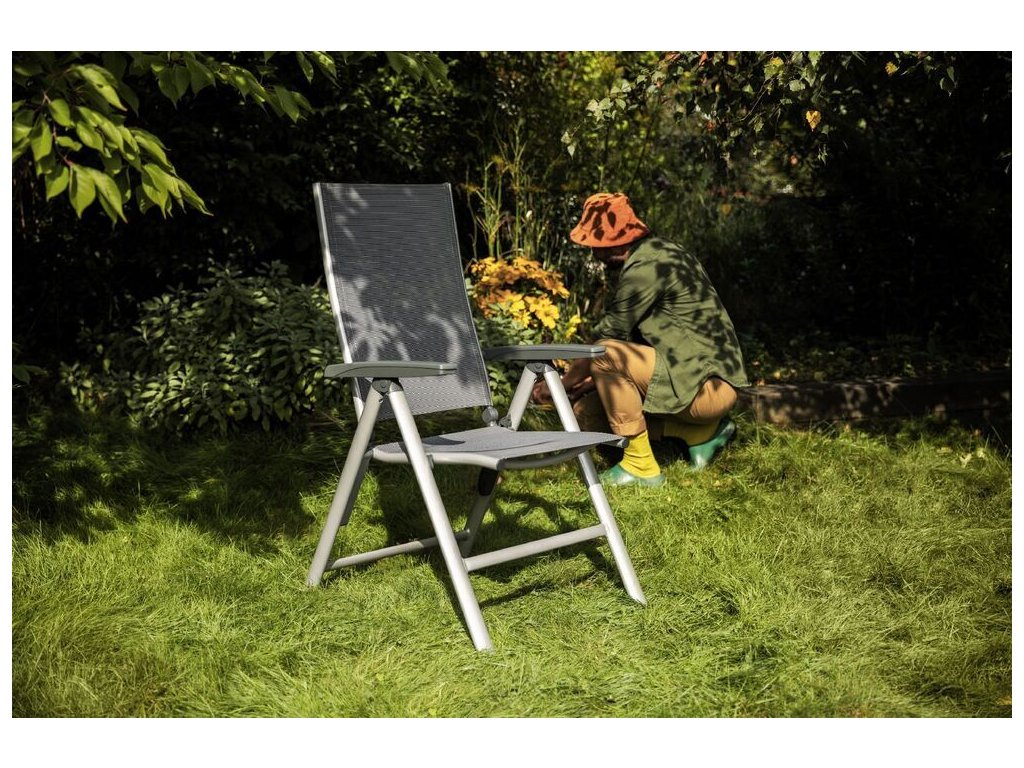 Díky robustnímu hliníkovému rámu s práškovým nástřikem a šroubům z nerezové oceli je křeslo mimořádně stabilní a odolné vůči korozi. Nízká hmotnost umožňuje snadnou manipulaci i přenášení. Sedák a opěrka jsou vyrobeny z tvarově stálé venkovní tkaniny, která je odolná vůči povětrnostním vlivům i UV záření – ideální pro použití na zahradě, terase či balkonu.