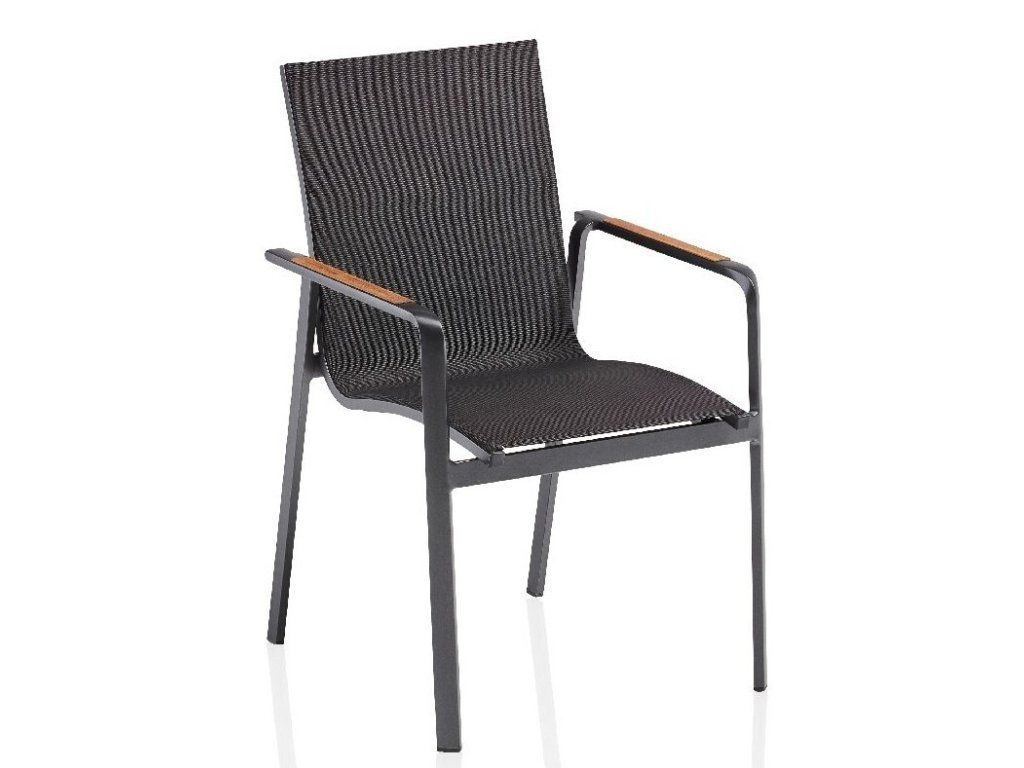 KETTLER DIAMOND stohovatelné, hliníkové křeslo s teakovými područkami - antracit / antracit