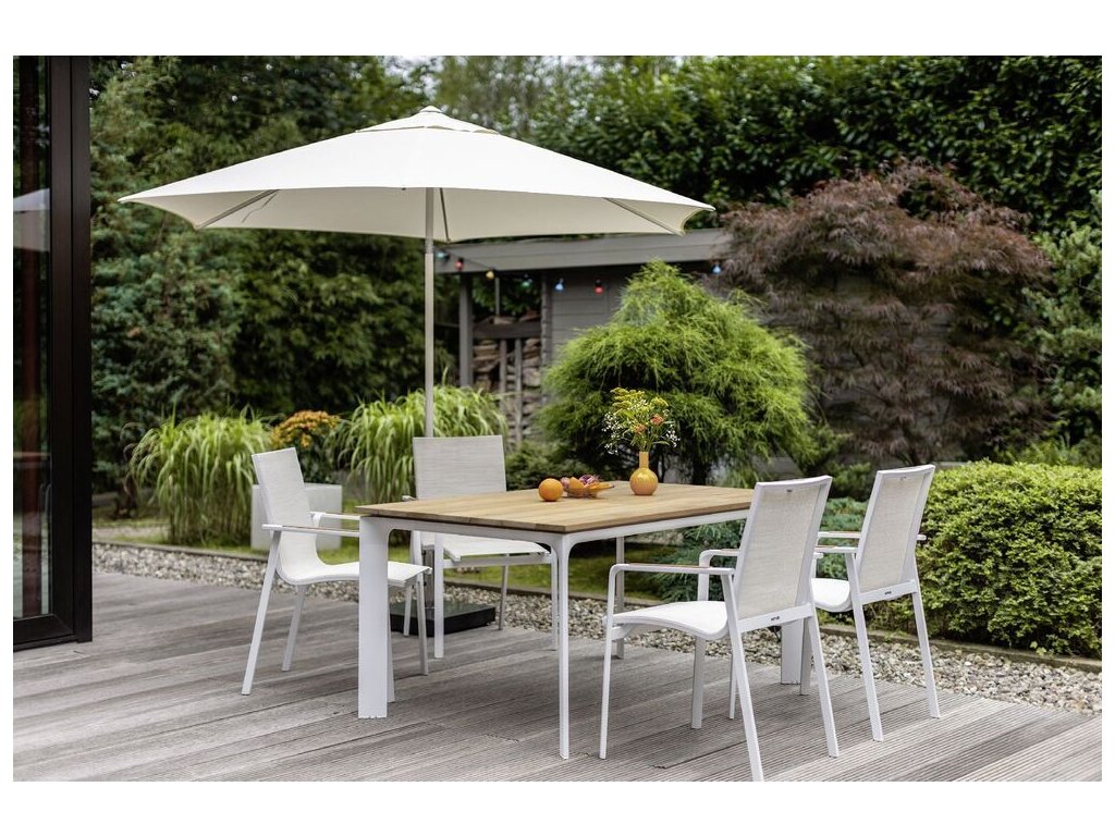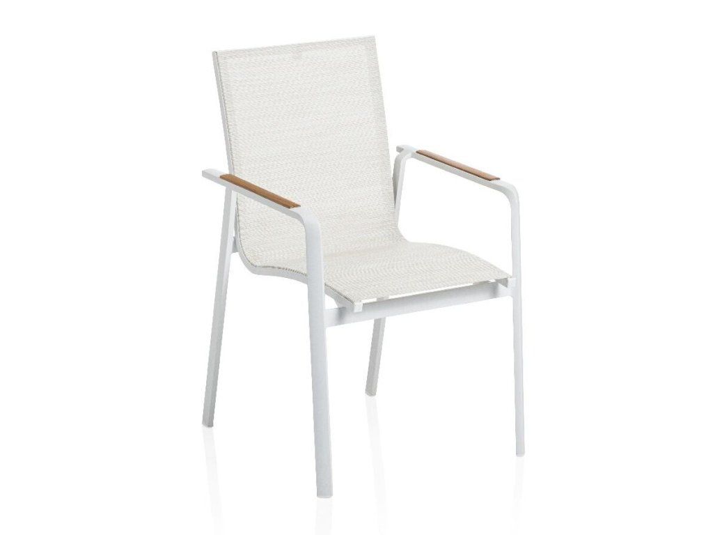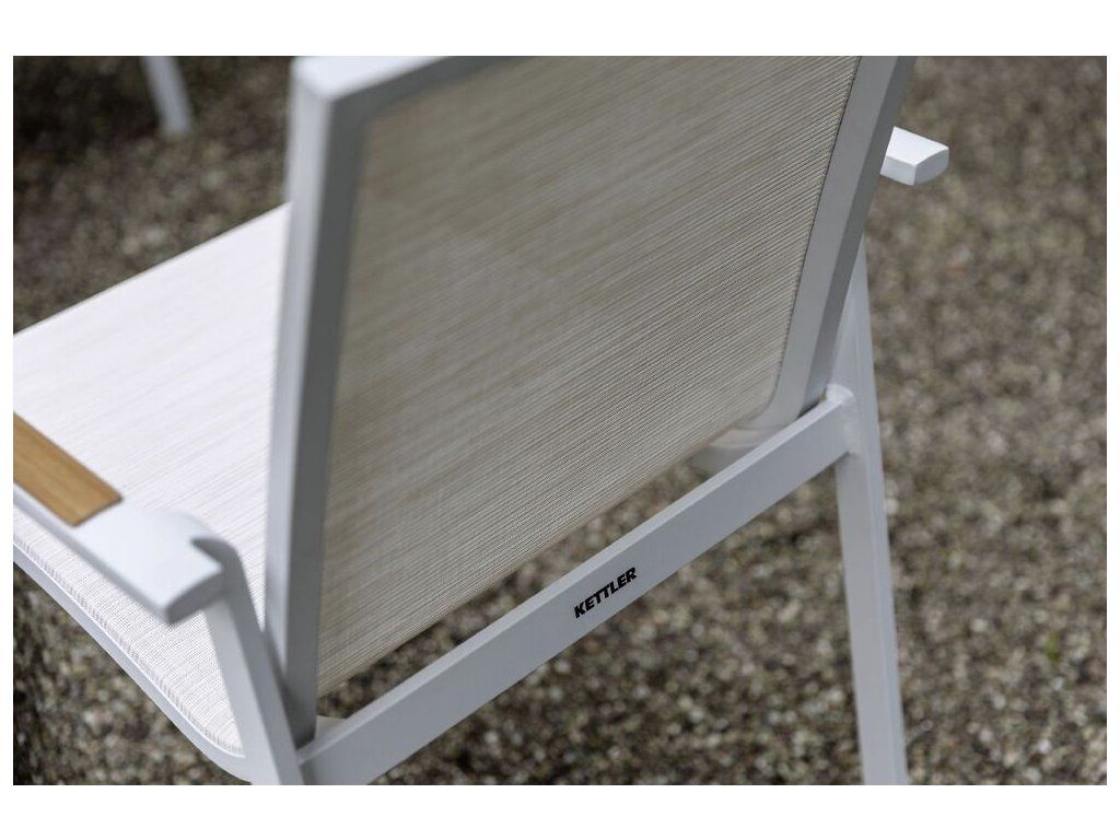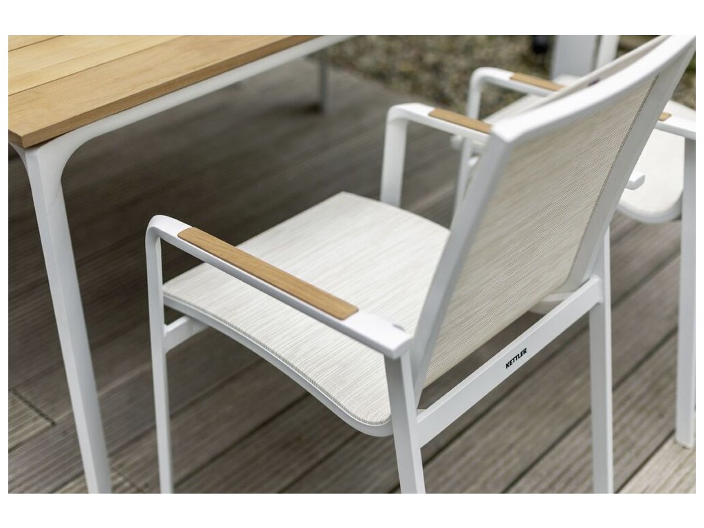 KETTLER DIAMOND stohovatelné, hliníkové křeslo s teakovými područkami - bílá / krémová
