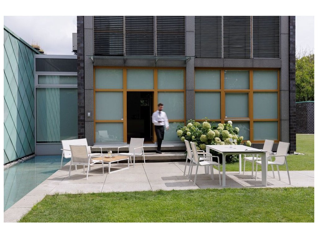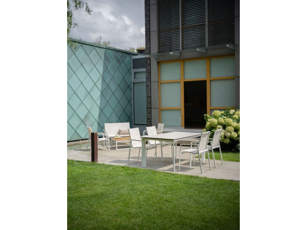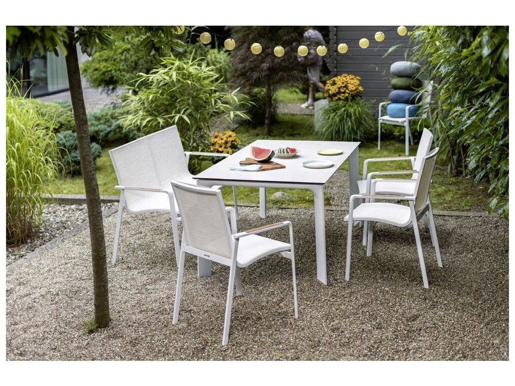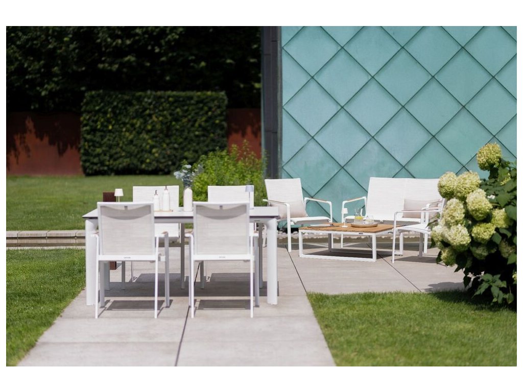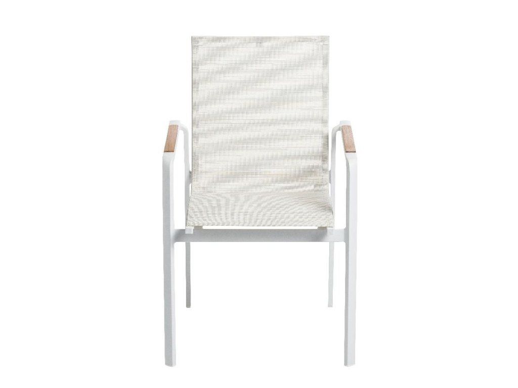 KETTLER DIAMOND stohovatelné, hliníkové křeslo s teakovými područkami - bílá / krémová