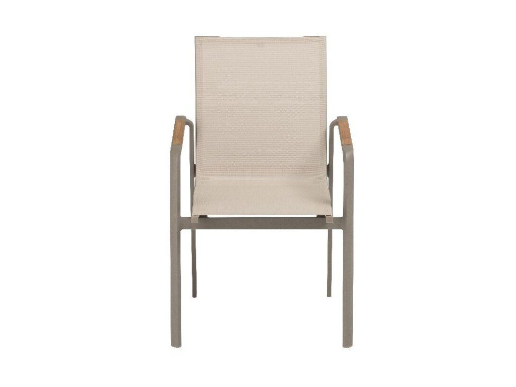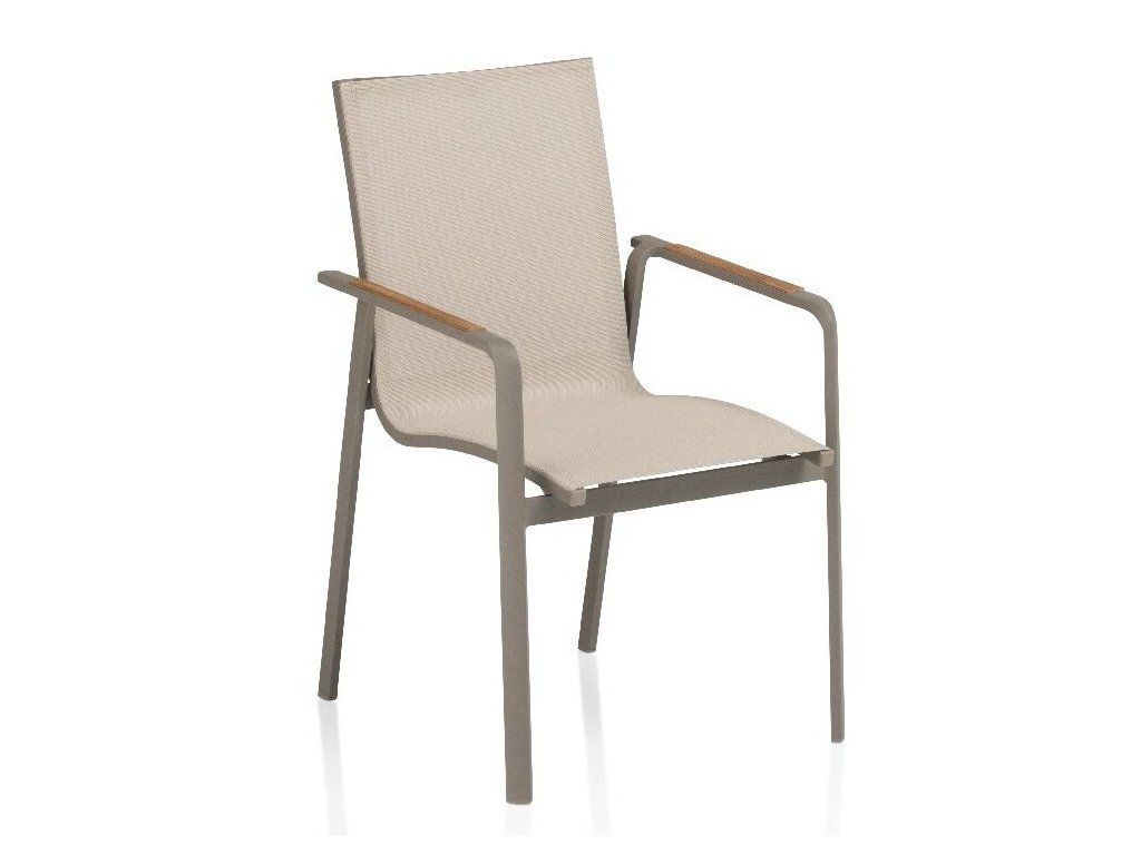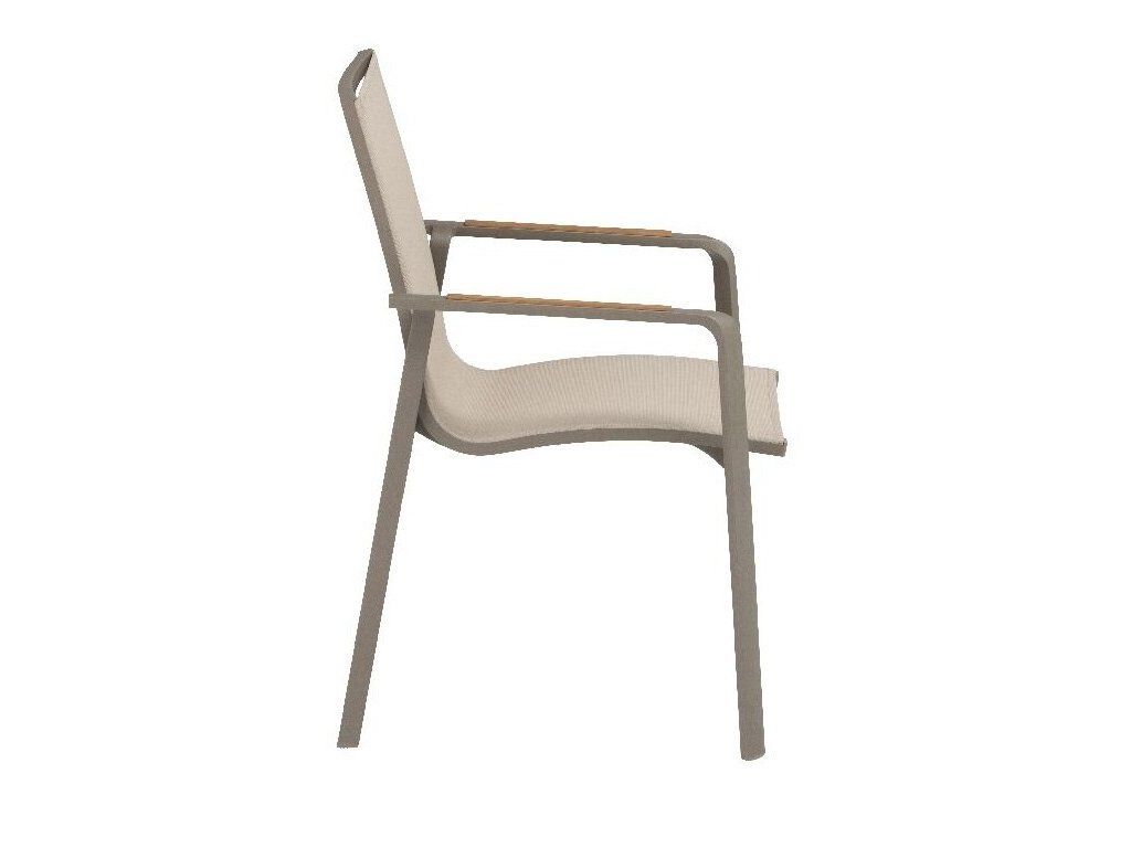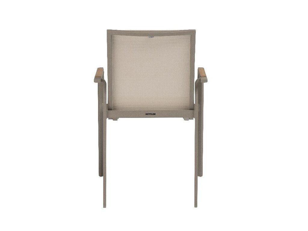 KETTLER DIAMOND stohovatelné, hliníkové křeslo s teakovými područkami - taupe / béžová