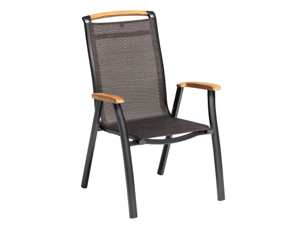 KETTLER MEMPHIS TEAK stohovatelné, hliníkové křeslo s teakovými područkami - antracit / bronzová