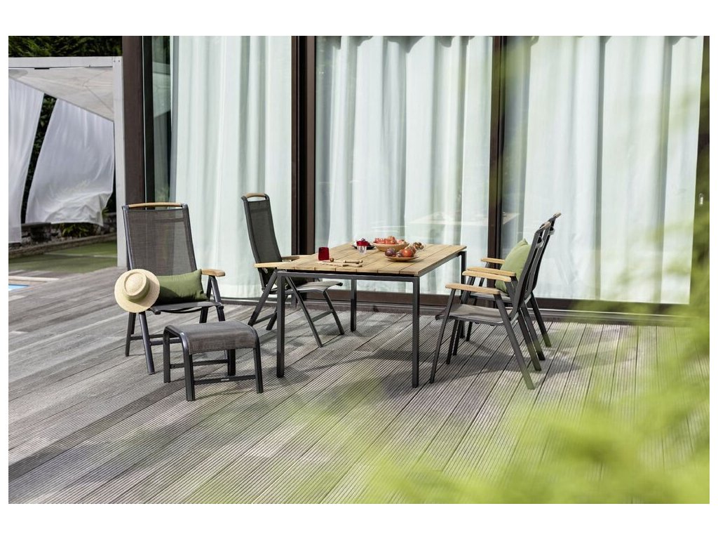 - Teakové prvky s certifikací FSC® na područkách a opěradle – přirozený vzhled a pohodlná opora