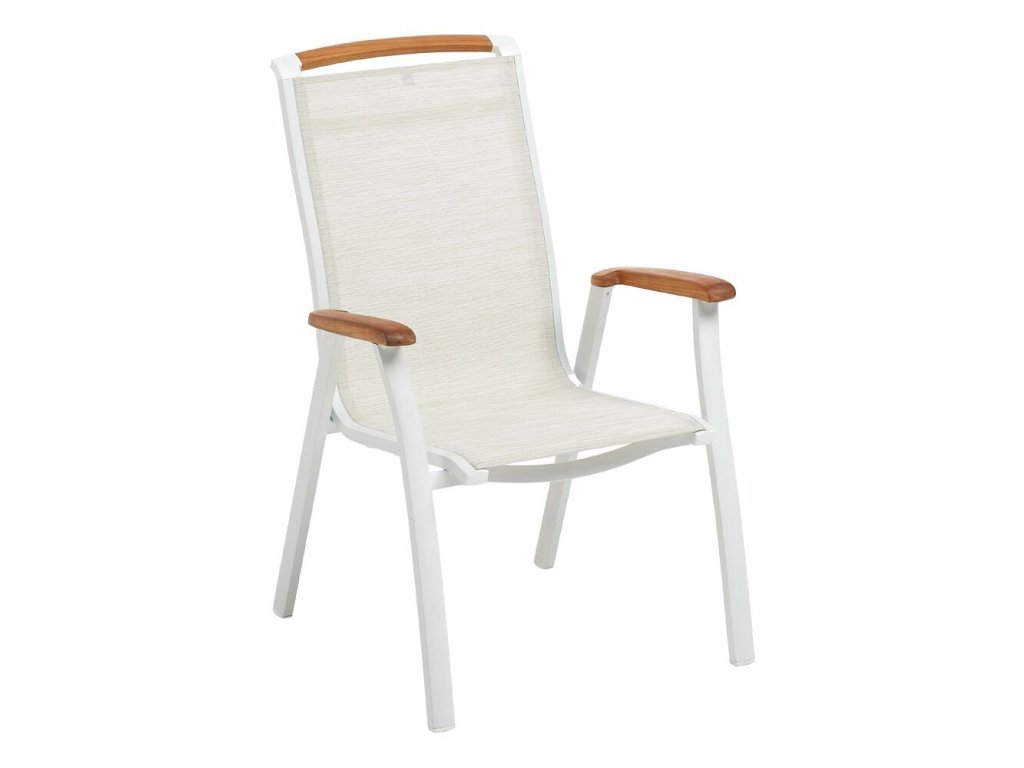 KETTLER MEMPHIS TEAK stohovatelné, hliníkové křeslo s teakovými područkami - bílá / béžová