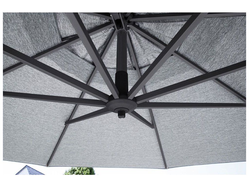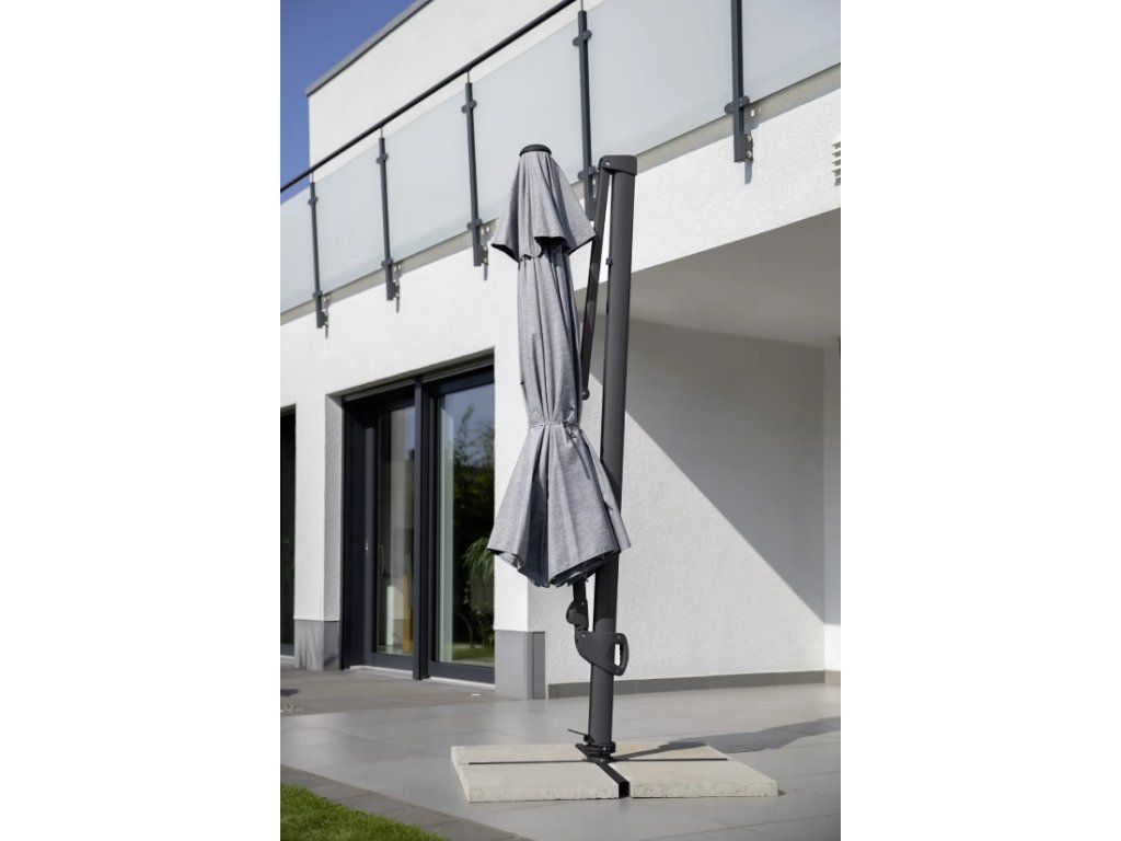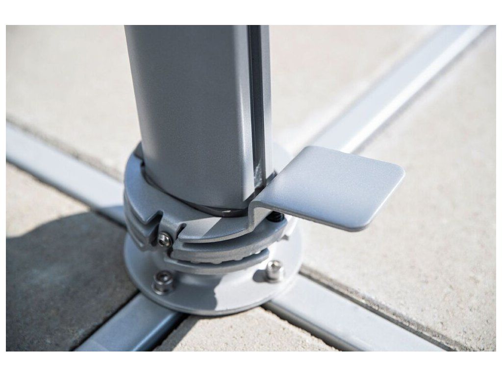 Díky praktickému pedálu lze slunečník otáčet o 360°, což umožňuje přesné nasměrování stínu bez nutnosti přesouvání celé konstrukce. Nastavitelný mechanismus umožňuje také snadné vertikální naklápění, takže se dokonale přizpůsobí poloze slunce v průběhu dne.