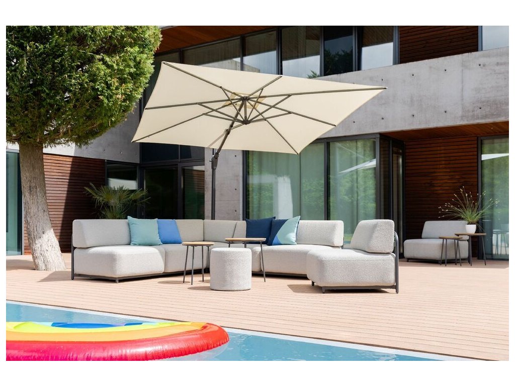 • Odolnost a snadná údržba: Hliníková konstrukce a Sunbrella® outdoor látka – voděodolná, prodyšná, odolná vůči plísním a snadno čistitelná.