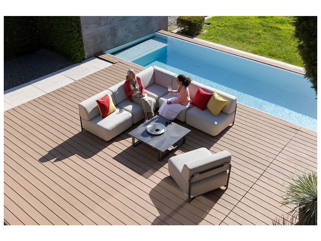 Elegantní design se snoubí s praktickým komfortem – jednotlivé prvky „venkovní pohovky“ zaujmou jednoduchým a stylovým vzhledem, přičemž poskytují maximální pohodlí a útulnost na terase.