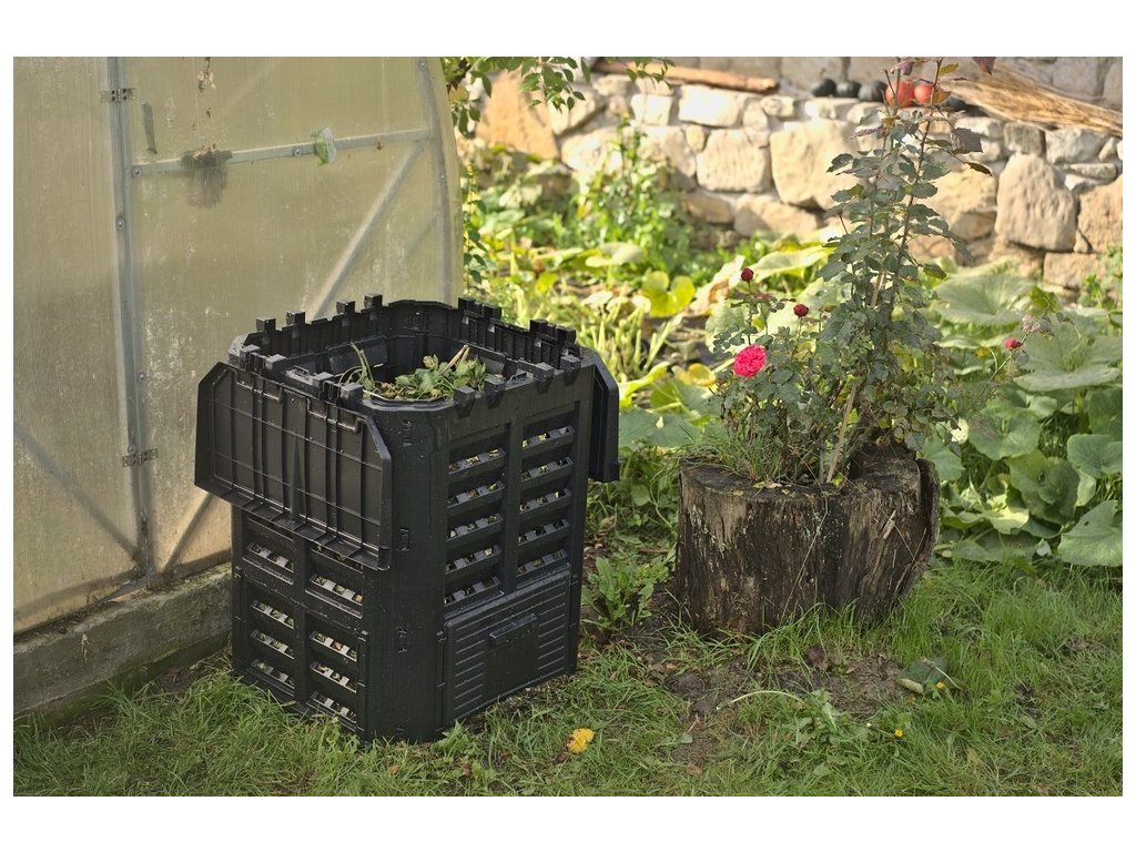 Plastový kompostér o objemu 360 L z velmi pevného polypropylenu. Konstrukce zajišťuje cirkulaci vzduchu a urychluje rozkladný proces. Součástí výrobku je víko i boční dvířka pro snadné vyjímání kompostu. Kompostér je odolný vůči povětrnostním podmínkám, UV záření a můžete ho mít venku za každého počasí -30 °C až 45 °C. Montáž je velmi jednoduchá, díky CLICK systému není zapotřebí žádné nářadí. Vyrobeno z recyklovaného materiálu.