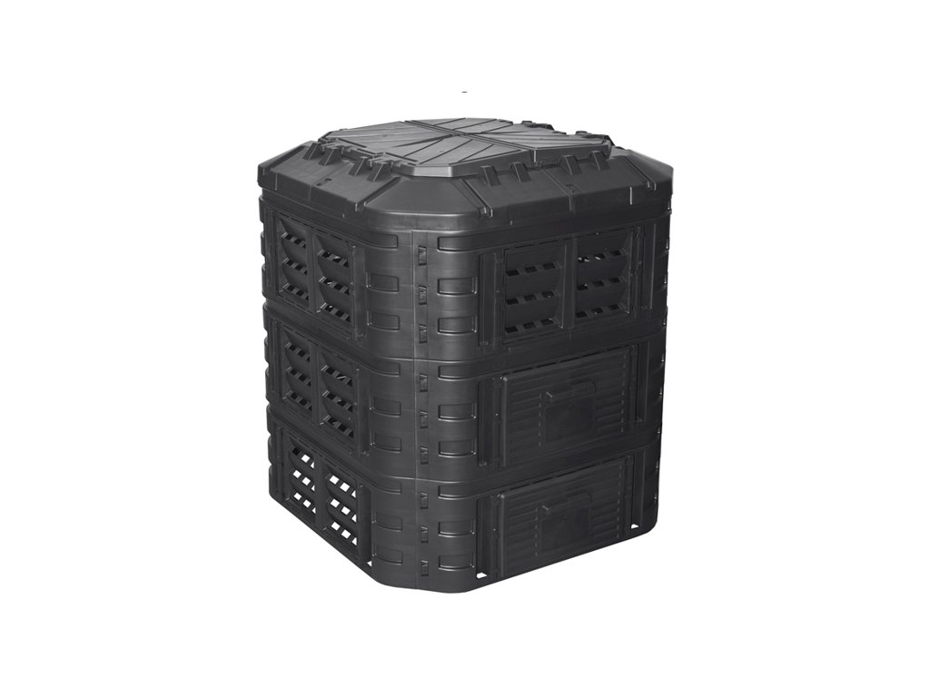 Plastový kompostér o objemu 860 L z velmi pevného polypropylenu. Konstrukce zajišťuje cirkulaci vzduchu a urychluje rozkladný proces. Součástí výrobku je víko i boční dvířka pro snadné vyjímání kompostu. Kompostér je odolný vůči povětrnostním podmínkám, UV záření a můžete ho mít venku za každého počasí -30 °C až 45 °C. Montáž je velmi jednoduchá, díky CLICK systému není zapotřebí žádné nářadí. Vyrobeno z recyklovaného materiálu.