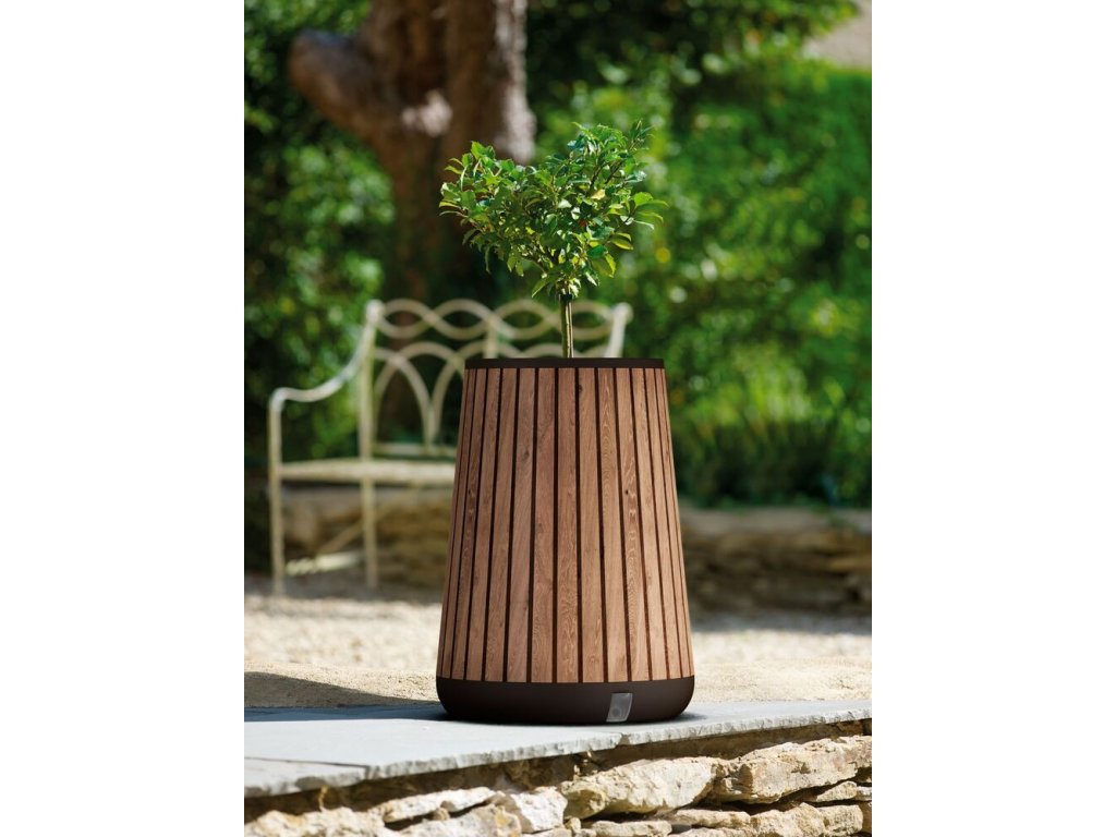 Vyrobený pomocí patentované technologie Decocoat z pevného plastu, která zajišťuje nejen elegantní vzhled, ale i mimořádnou odolnost. Povrch květináče dokonale imituje dřevo a přitom odolá všem povětrnostním vlivům – užijete si jej bez nutnosti údržby či výměny.