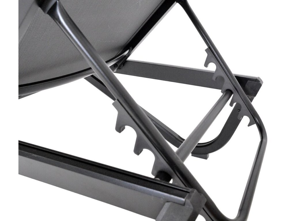Lehátka mají stabilní hliníkovou konstrukci, která je zároveň lehká a snadno přenosná. Díky tomu je manipulace velmi jednoduchá a umožňuje také praktické stohování více kusů. Sedací a opěrná plocha je vyrobena z odolné textilie 2x1 v elegantní černé barvě, která skvěle ladí s moderním exteriérem.