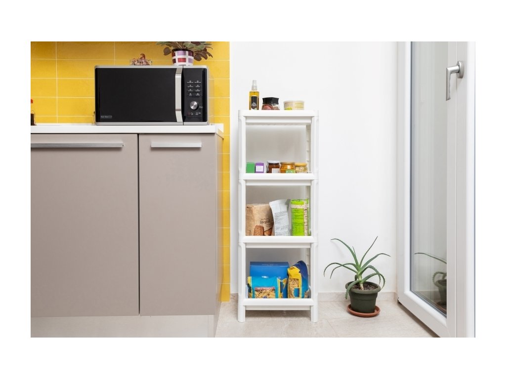 - Elegantní bílé provedení: Praktický a elegantní vzhled se snadno přizpůsobí jakékoliv kuchyni, spíži či koupelně.