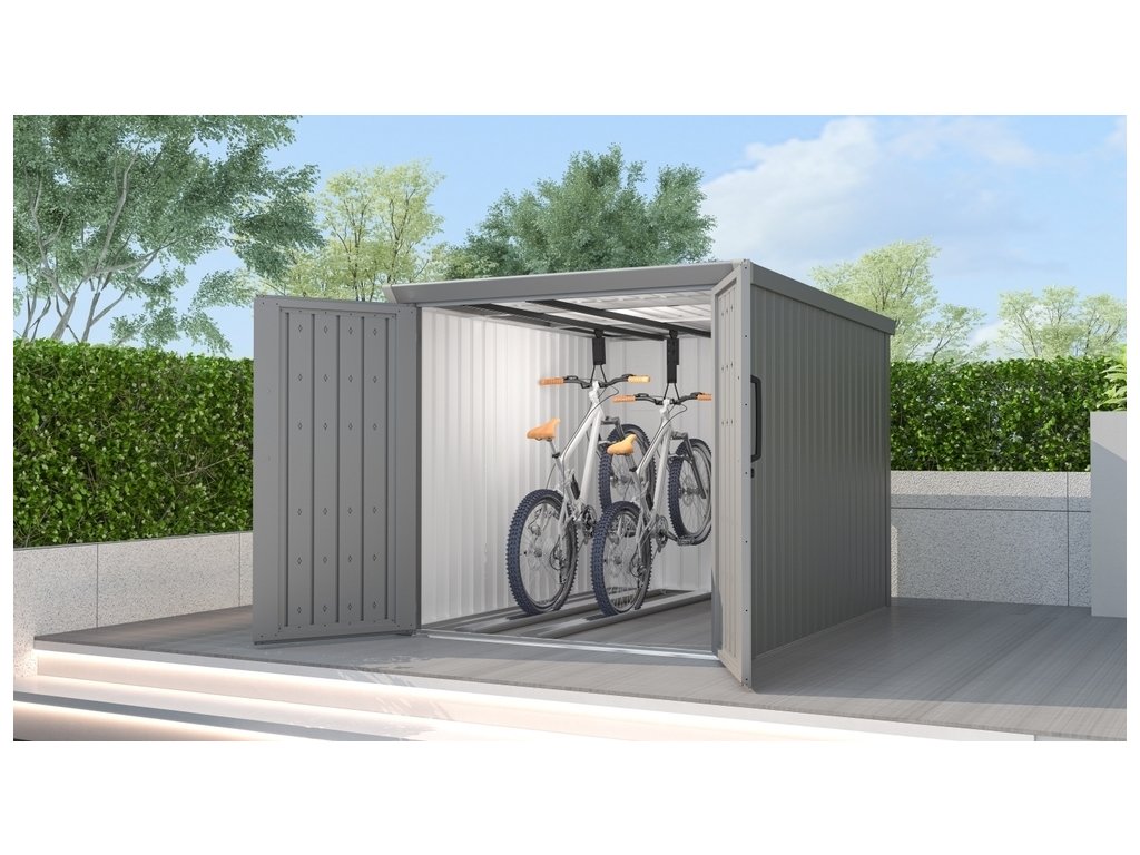 Do domku AVOCADO B se vejdou 4 lišty na kola. Usnadňěte si manipulaci při úschově kol.