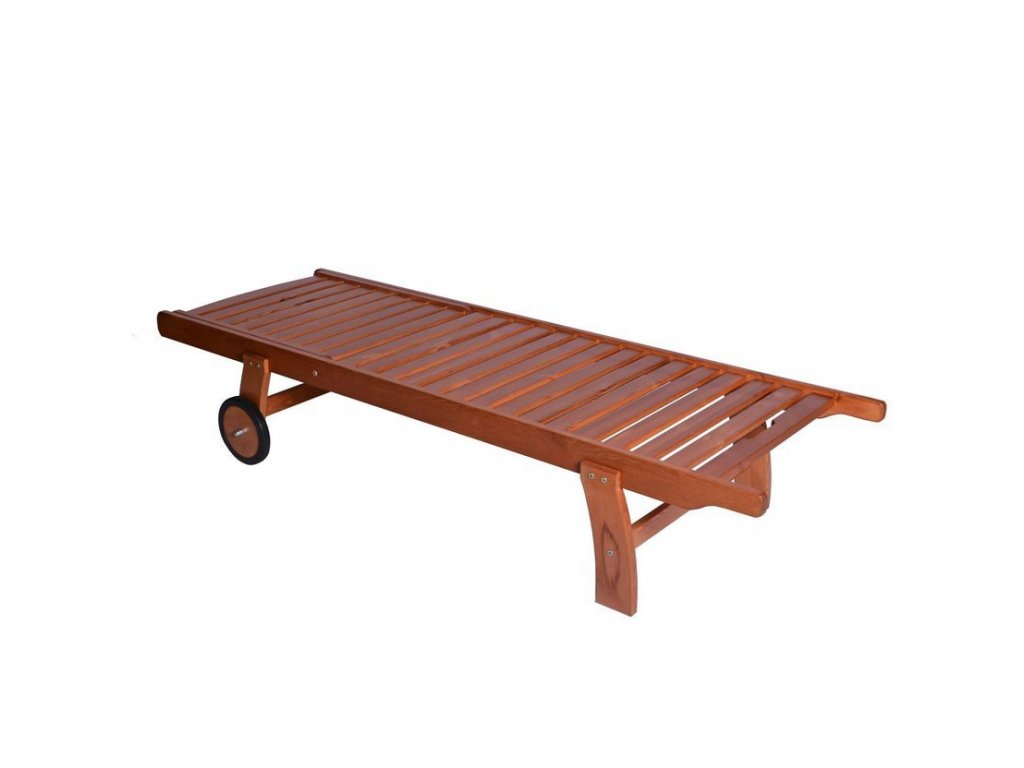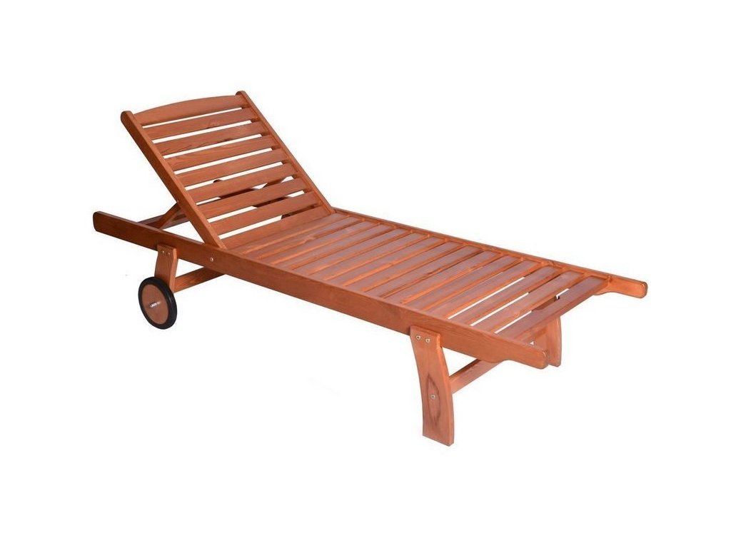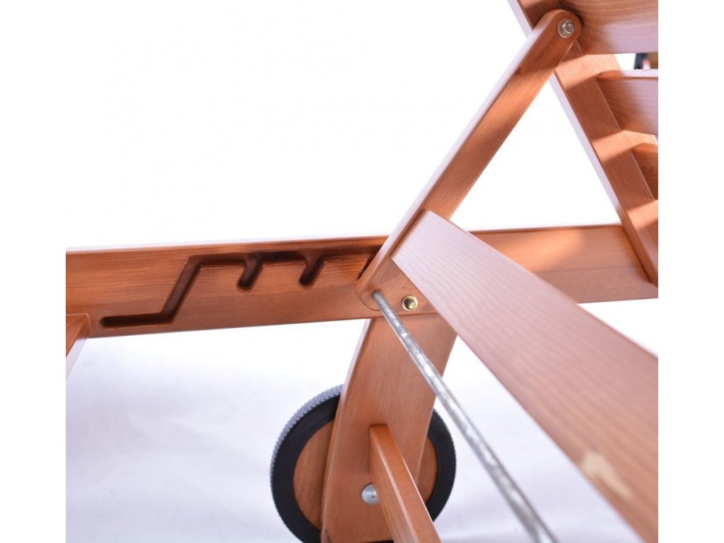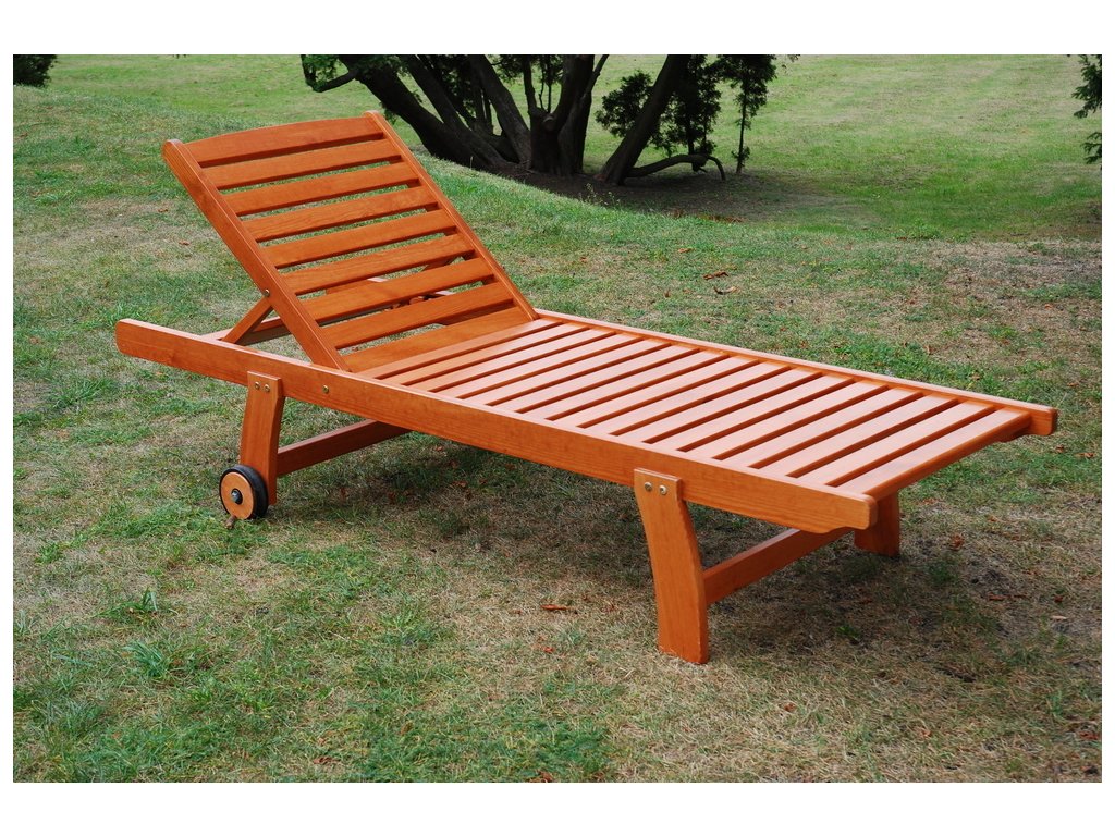 Stabilní polohovací zahradní lehátko z lakovaného borovicového dřeva.
