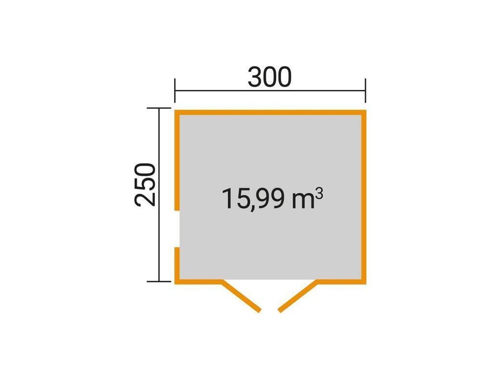 Základna domku je 300 x 250 cm, síle stěny 28 mm, podlaha z masivního dřeva o tloušťce 15 mm. Konstrukci lze jednoduše postavit díky šroubovacímu systému.