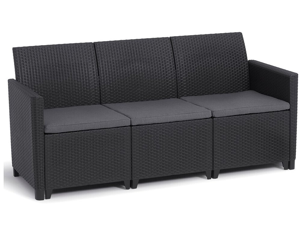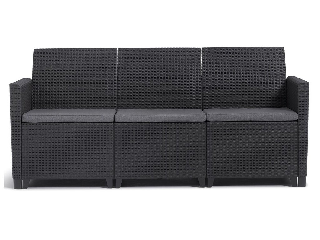 Sofa je vyrobeno z lisovaného plastu v imitaci přírodního ratanu.