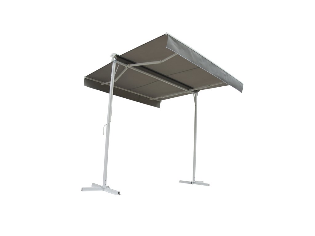 Volně stojící markýza obsahuje hliníkový roler, hliníkový nosník a hliníková výsuvná ramena. Možnost vysunutí 1,5 metru na každou stranu.