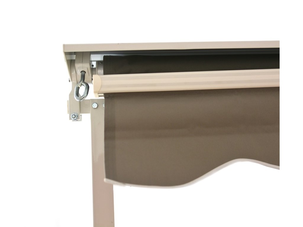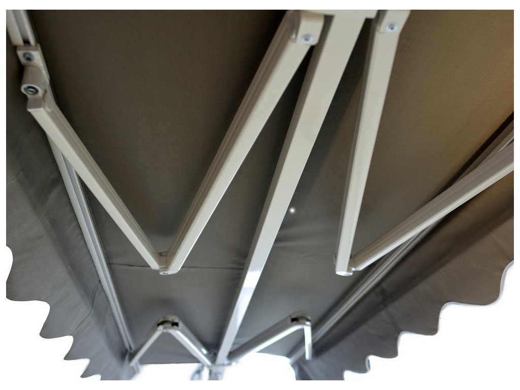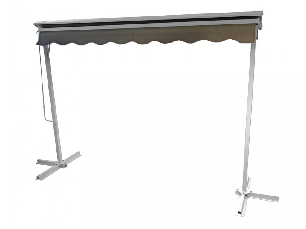 Volně stojící markýza obsahuje hliníkový roler, hliníkový nosník a hliníková výsuvná ramena. Možnost vysunutí 1,5 metru na každou stranu.