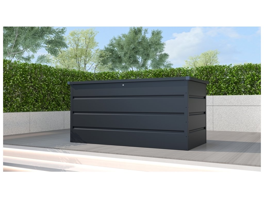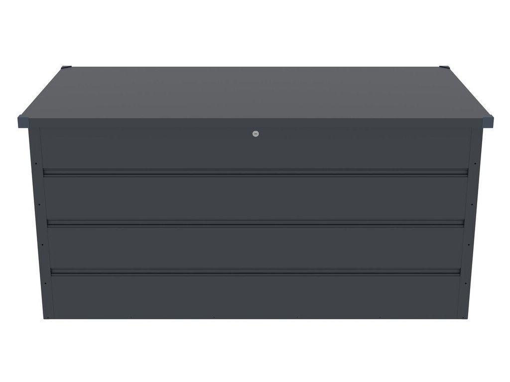 Udržujte svůj venkovní prostor organizovaný a stylový s prémiovým úložným boxem MAX F. Tento pevný kovový box je vyroben z ocelového plechu o tloušťce 0,4 mm, což zajišťuje jeho odolnost a dlouhou životnost.