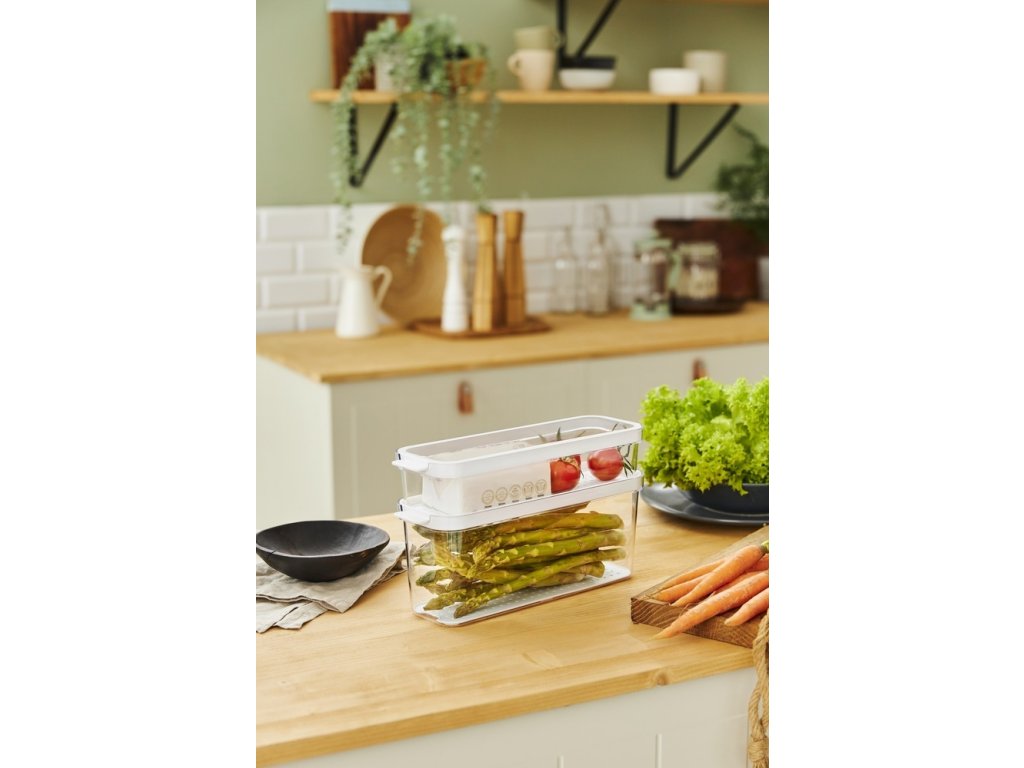 Vložka s otvory umožňuje odtékání tekutiny, díky čemuž potraviny zůstanou déle čerstvé. Vložku lze vyndat.