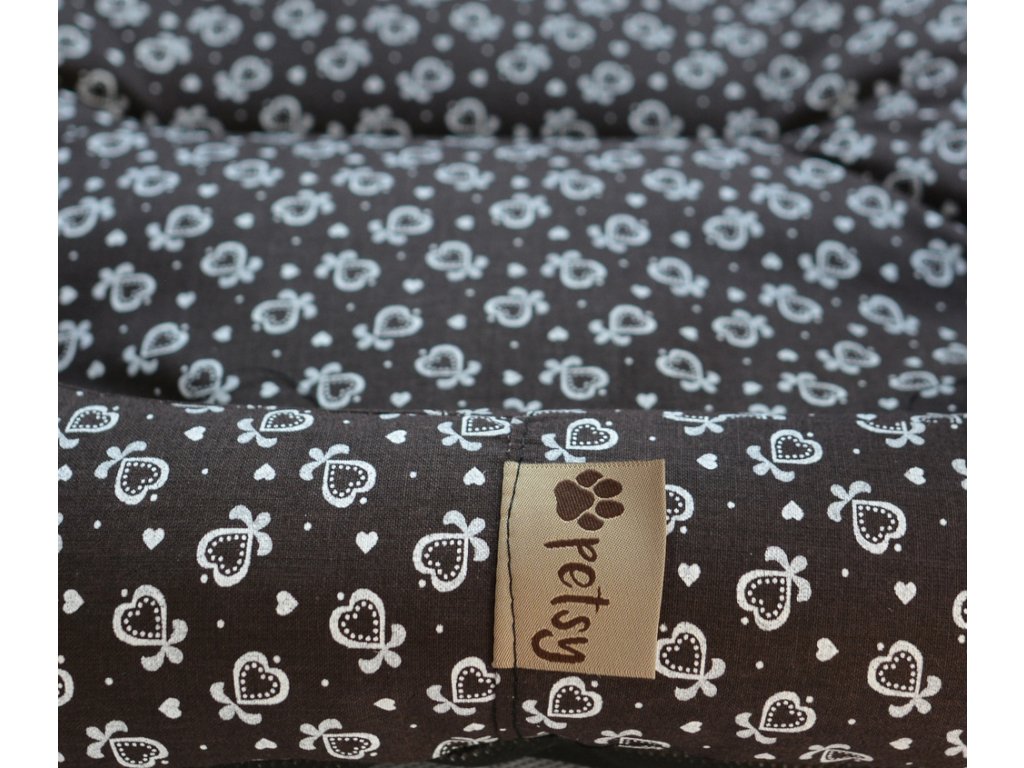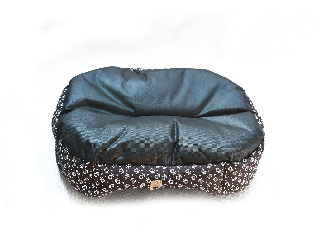 Pelíšek je ušit ze 100% bavlny + nepromokavé dno a je vyplněn dutým vláknem.