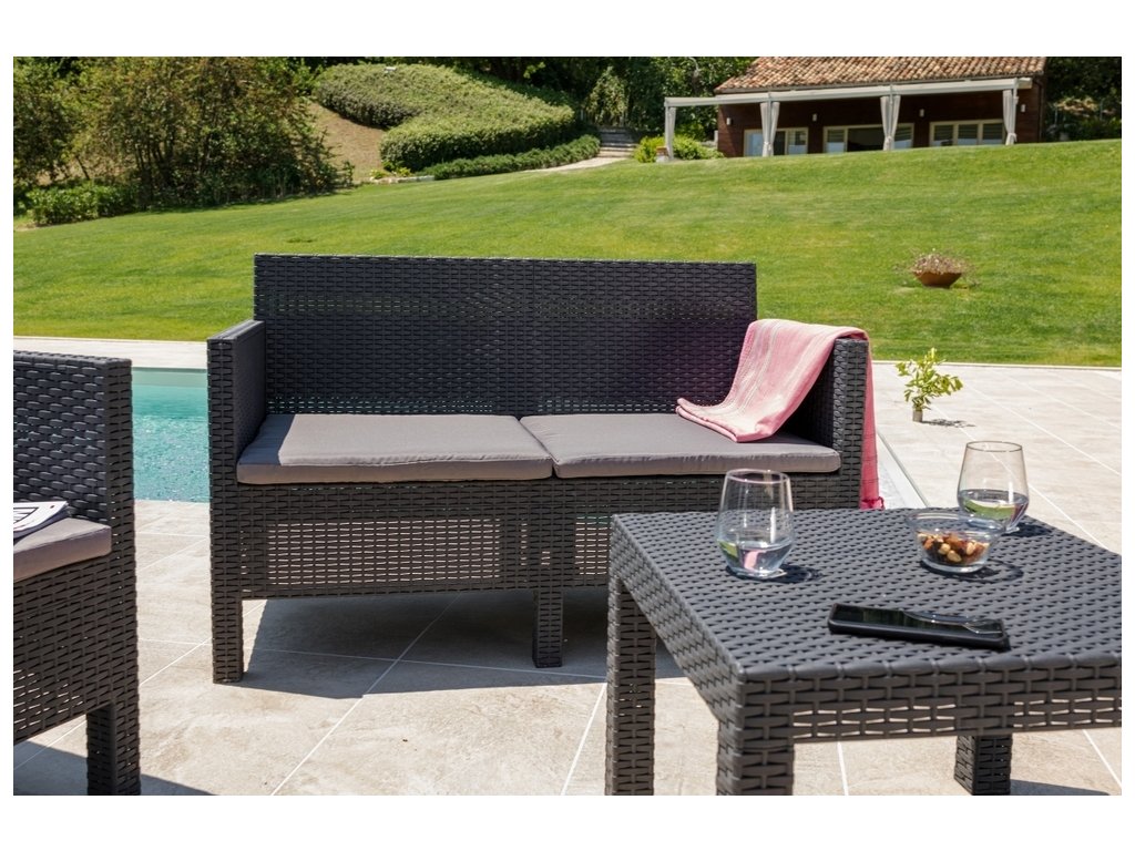 Nechte se okouzlit elegancí a komfortem zahradního plastového setu PENELOPE 4 SEATERS v grafitovém provedení a udělejte si z Vašeho venkovního prostoru místo, kde budete rádi trávit čas s rodinou a přáteli. Vytvořte si svůj vlastní ráj ve Vaší zahradě s tímto exkluzivním zahradním nábytkem.