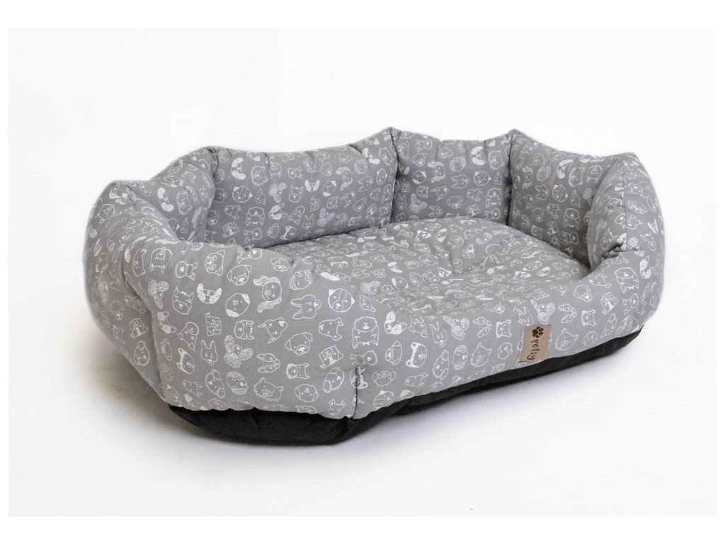 Pelíšek je ušit ze 100% bavlny + nepromokavé dno a je vyplněn dutým vláknem.