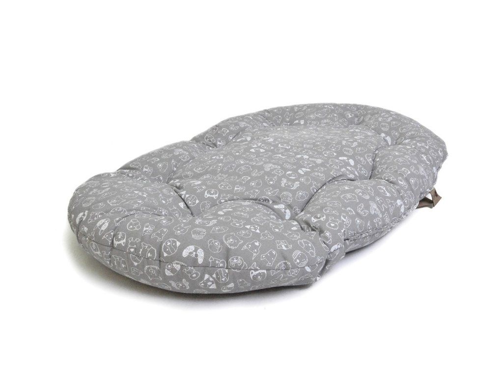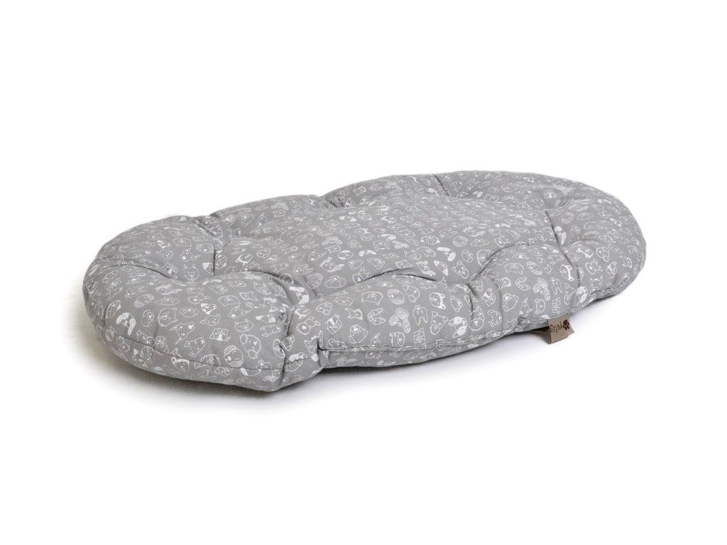 Ručně šitý oválný polštář pro psy.