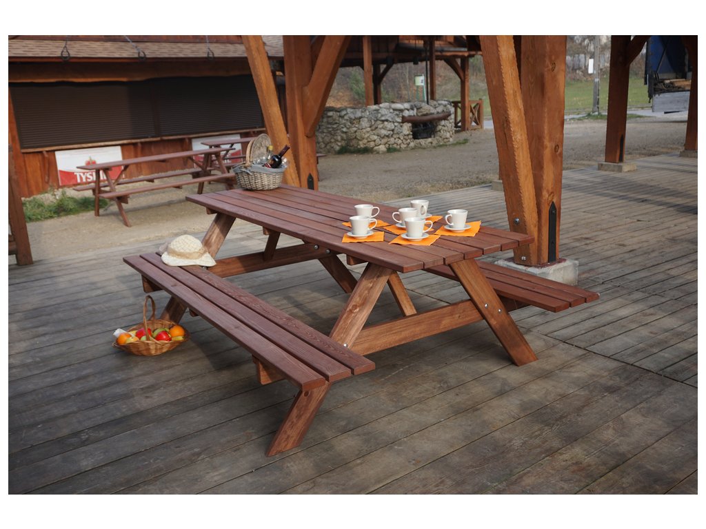 PIKNIK zahradní set dřevěný - 180 cm - mořený