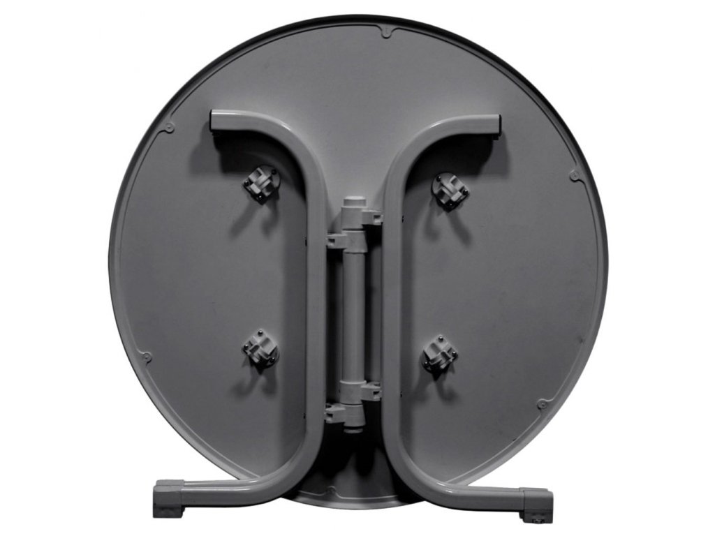 Kulatý skládací stůl s kovovou, pevnou konstrukcí a odolnou vrchní deskou sevelit.