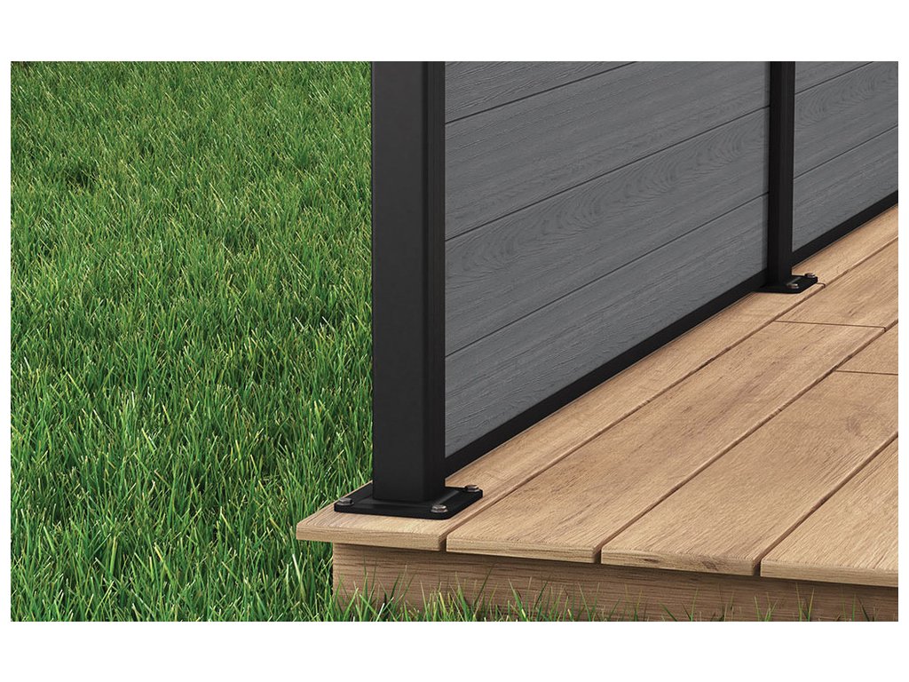 Díky robustní konstrukci (dvoustěnné panely o síle 21 mm) odolá větru o rychlosti až 95 km/h. Vyrobený z patentovaného kompozitního plastu EvoTech, který kombinuje teplý vzhled dřeva zde v šedém barevném provedení s bezúdržbovými vlastnostmi pryskyřice.