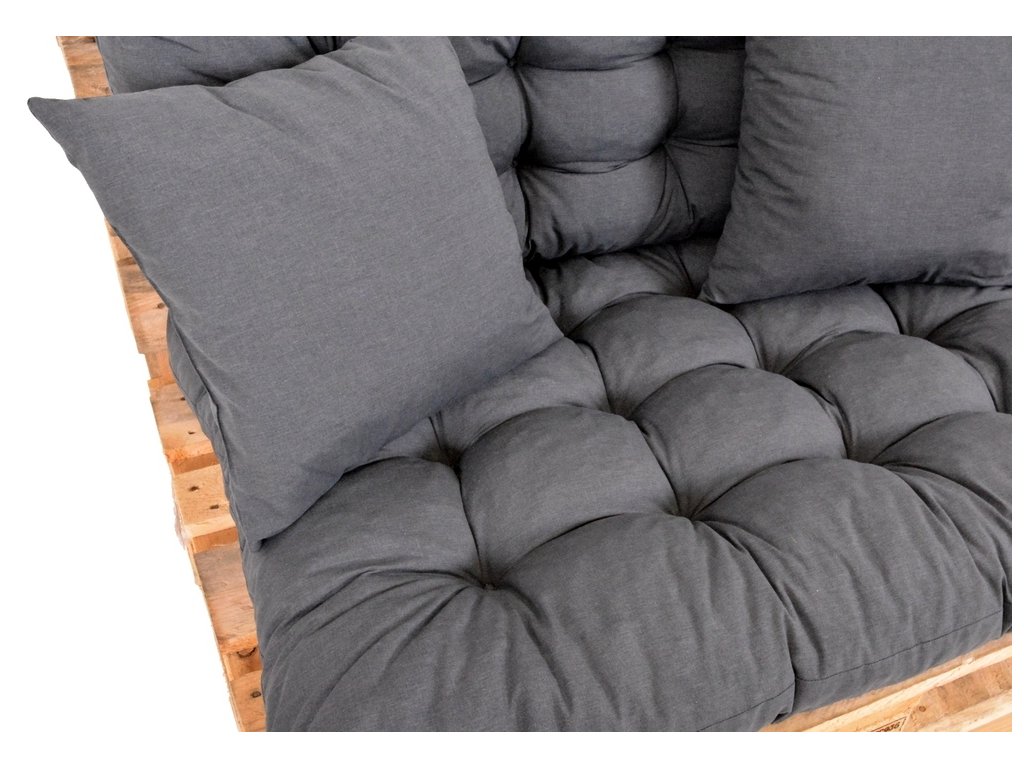 Set obsahuje jak pohodlnou opěrku pro záda, tak i sedák pro optimální komfort a navíc dva polštářky. Podušky jsou navrženy tak, aby perfektně ladily s rozměry a tvarem EUR palet.