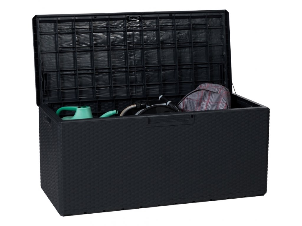 Představujeme Vám zahradní plastový úložný box PORTOFINO 340 l v elegantní grafitové barvě - ideální řešení pro Vaše zahradní úložné potřeby!