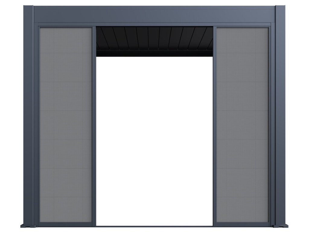 Pro maximální využití bioklimatických pergol nabízíme také příslušenství v podobě posuvné zástěny s hliníkovou konstrukcí a výplní z textilenu, která poskytne ochranu před větrem, zároveň vytvoří i příjemný stín.