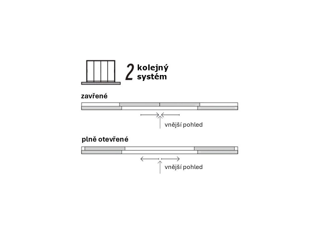Posuvná zástěna se skládá ze 4 posuvných panelů ve 2 kolejnicích.