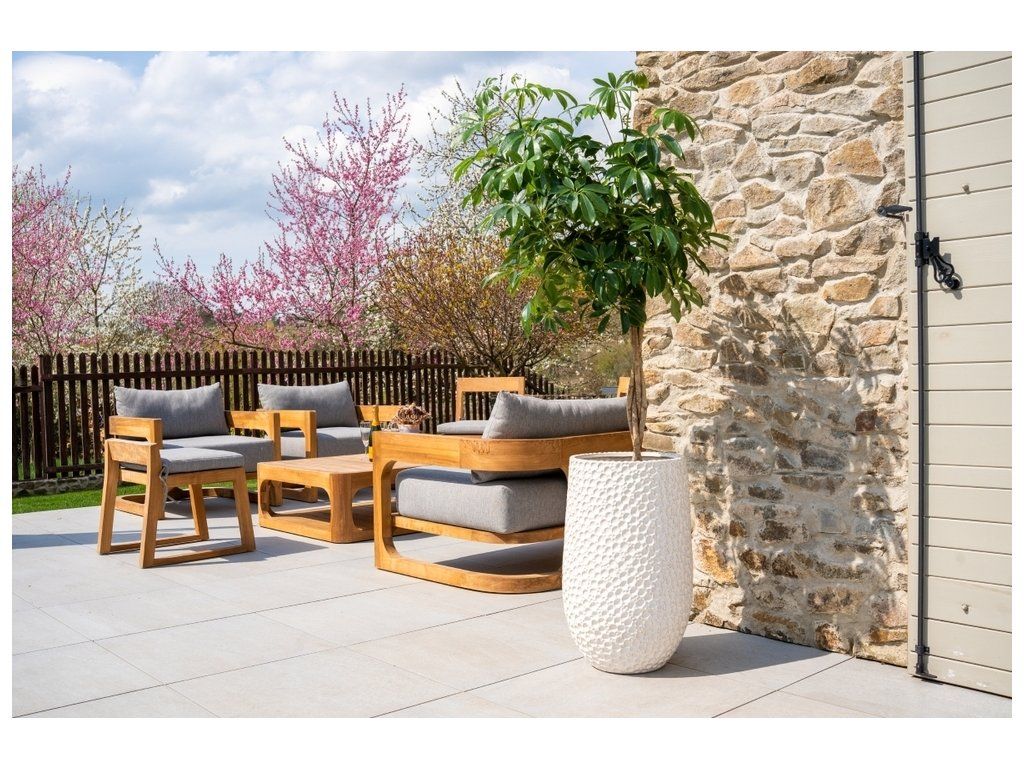 Strukturovaný povrch květináče vytváří atraktivní světelné odlesky a činí z něj výjimečný prvek.