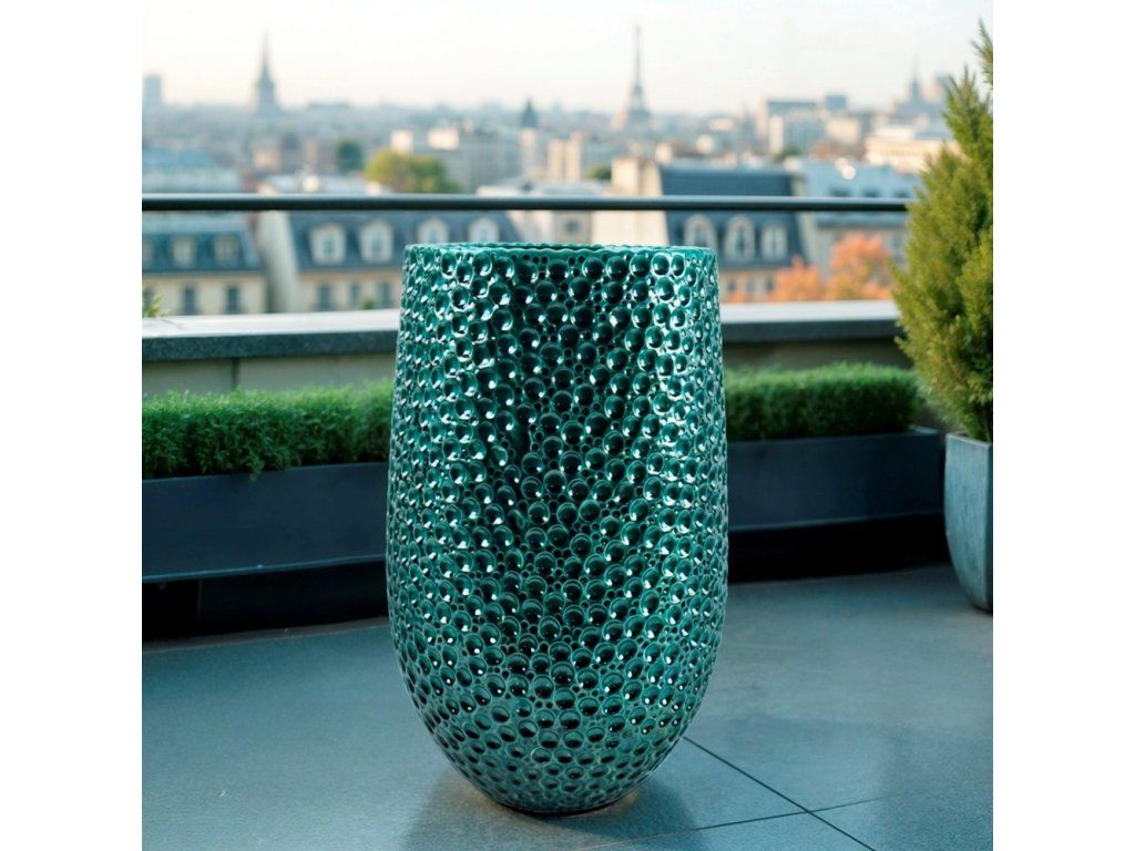 Tento elegantní keramický květináč v zelené barvě s plastickým, strukturovaným povrchem dodá vašemu interiéru či exteriéru moderní vzhled.
