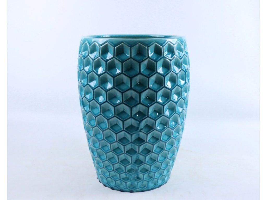 Tento elegantní keramický květináč v modré barvě s výrazným plastickým vzorem dodá vašemu interiéru i exteriéru energii a moderní nádech.