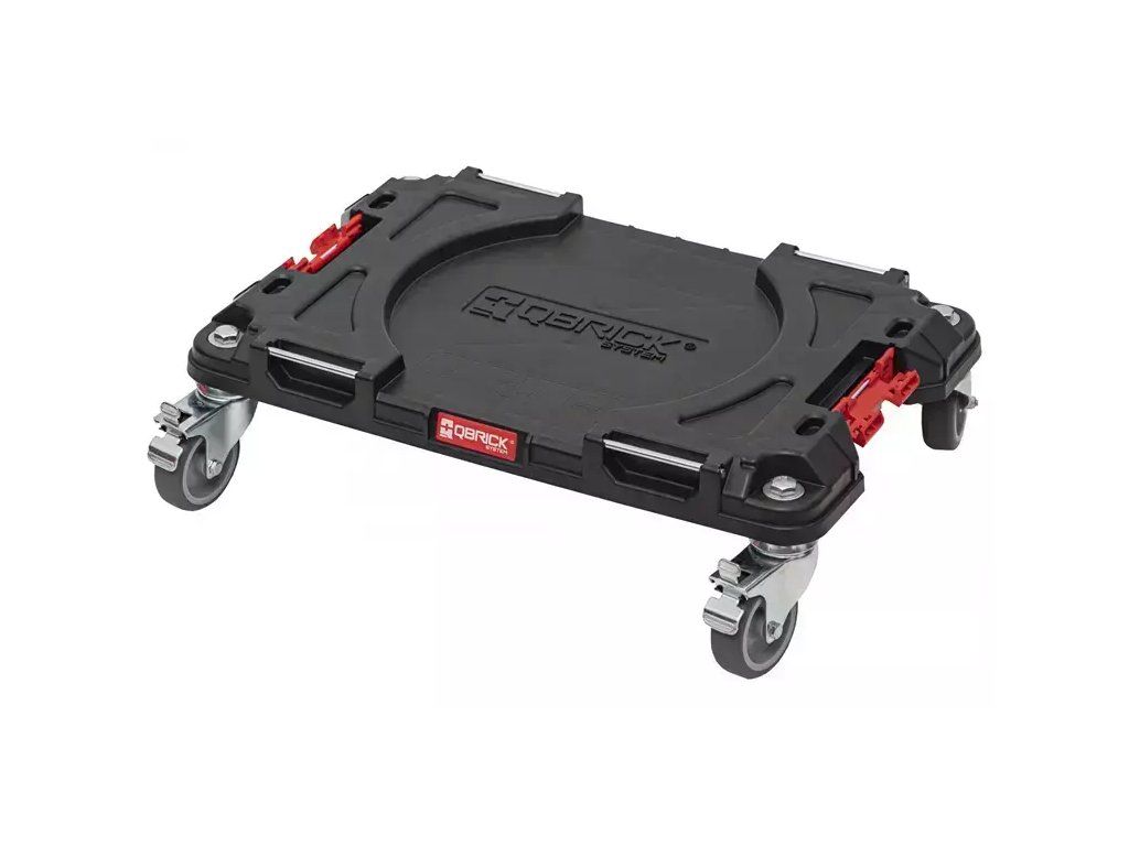 Díky základně s kolečky, na které jsou zásuvkové organizéry upevněny, můžete s celým setem velmi snadno manipulovat. Kvalitní kovová, otočná kola s brzdou nabízí výbornou ovladatelnost. Maximální zatížení je 100 kg. Na plošině jsou i hliníkové držáky na montážní popruhy. Uprostřed základny je tvarovaný prostor pro stavební kbelík.