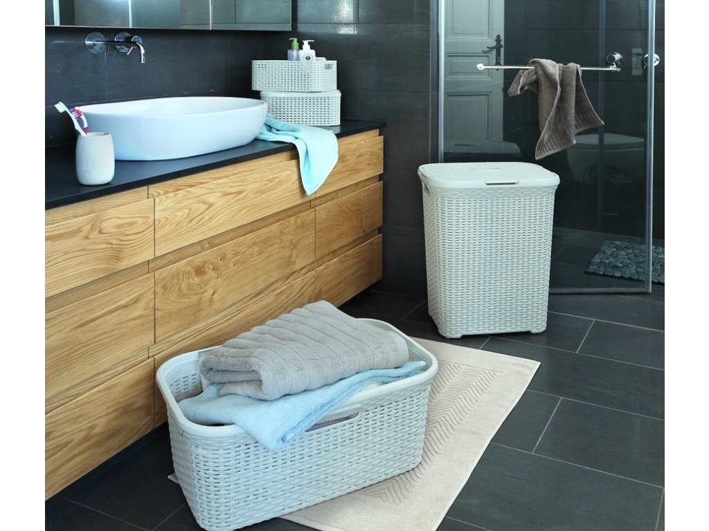 RATTAN STYLE 45L koš na čisté prádlo - krémový