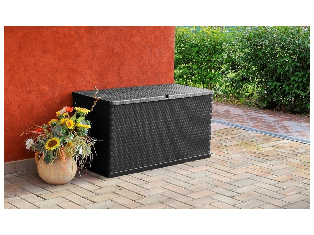 Box má atraktivní povrchovou úpravu, která vypadá jako rattan, což mu dodává přírodní a elegantní vzhled. Bude se skvěle hodit do jakéhokoli zahradního prostředí a zvýší estetickou hodnotu Vašeho venkovního prostoru.