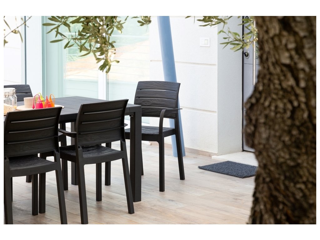 Grafitové provedení křesla RECANATI je univerzální a skvěle doplní mnohé stoly či sestavy v této barvě, což Vám umožní vytvořit elegantní a vkusné venkovní prostředí.