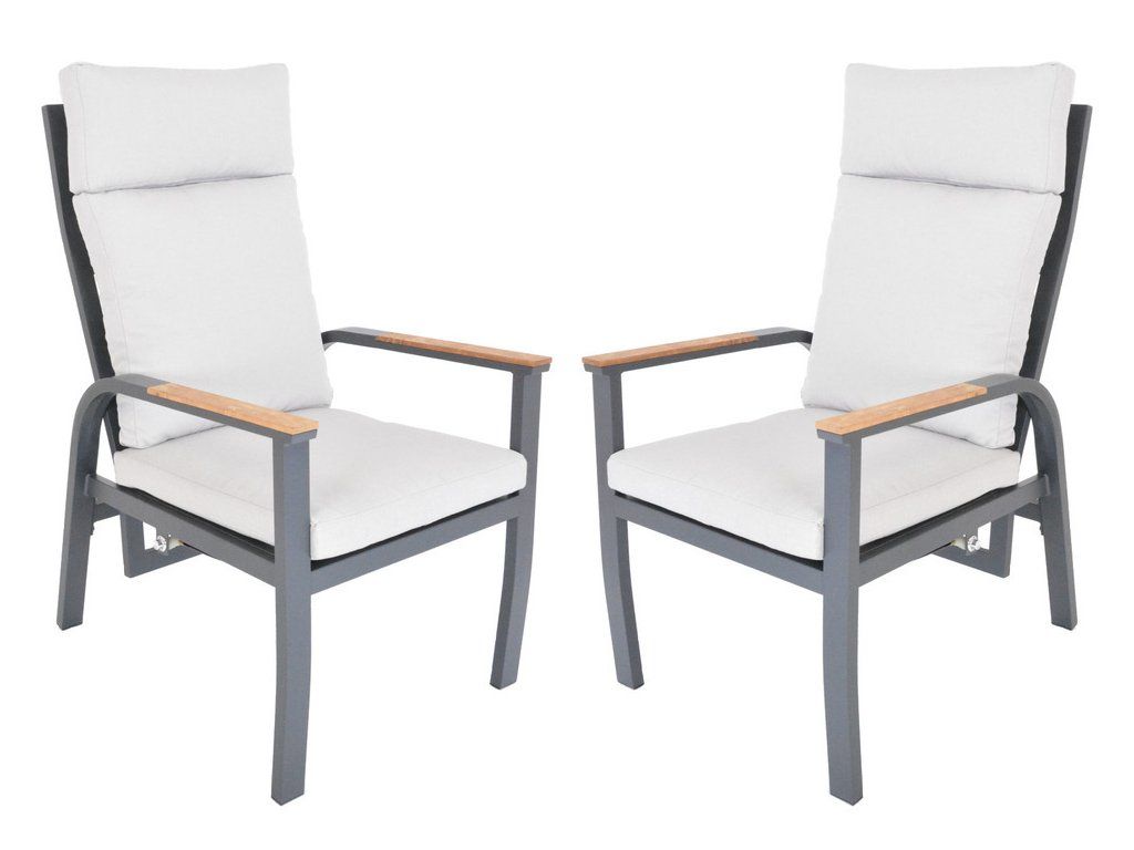 Luxusní hliníková křesla v grafitovém provedení, doplněna o teakové područky.