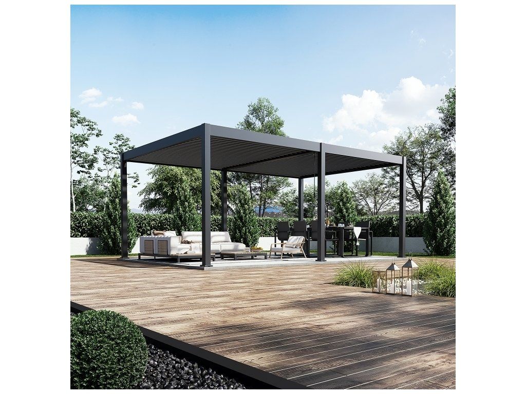 Prémiová zahradní hliníková volně stojící bioklimatická pergola o rozměrech 6x4 metry představuje ideální způsob zastřešení Vašeho venkovního posezení.