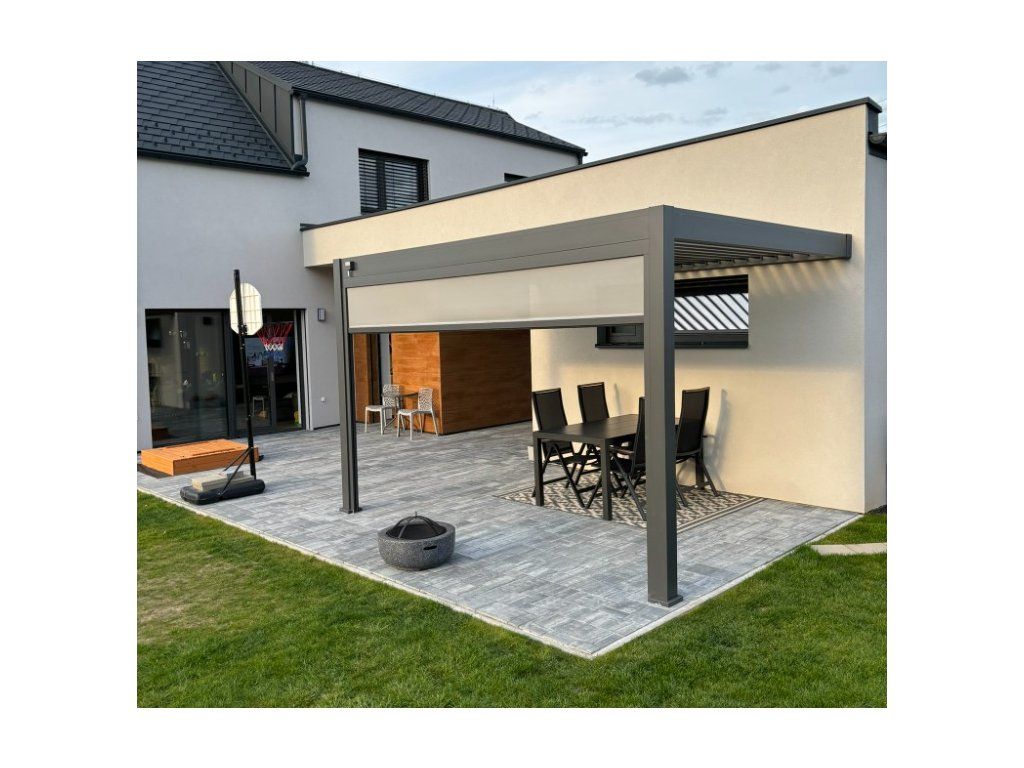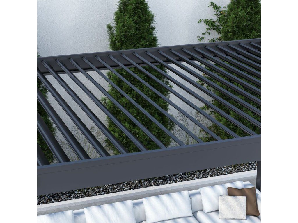 Velmi pevná a stabilní konstrukce v antracitové barvě RAL 7016, v matné povrchové úpravě se hodí do každého prostoru. Pergola je vyrobena z vysoce kvalitního hliníku, který je ošetřen práškovou barvou, což zaručuje odolnost vůči povětrnostním vlivům.