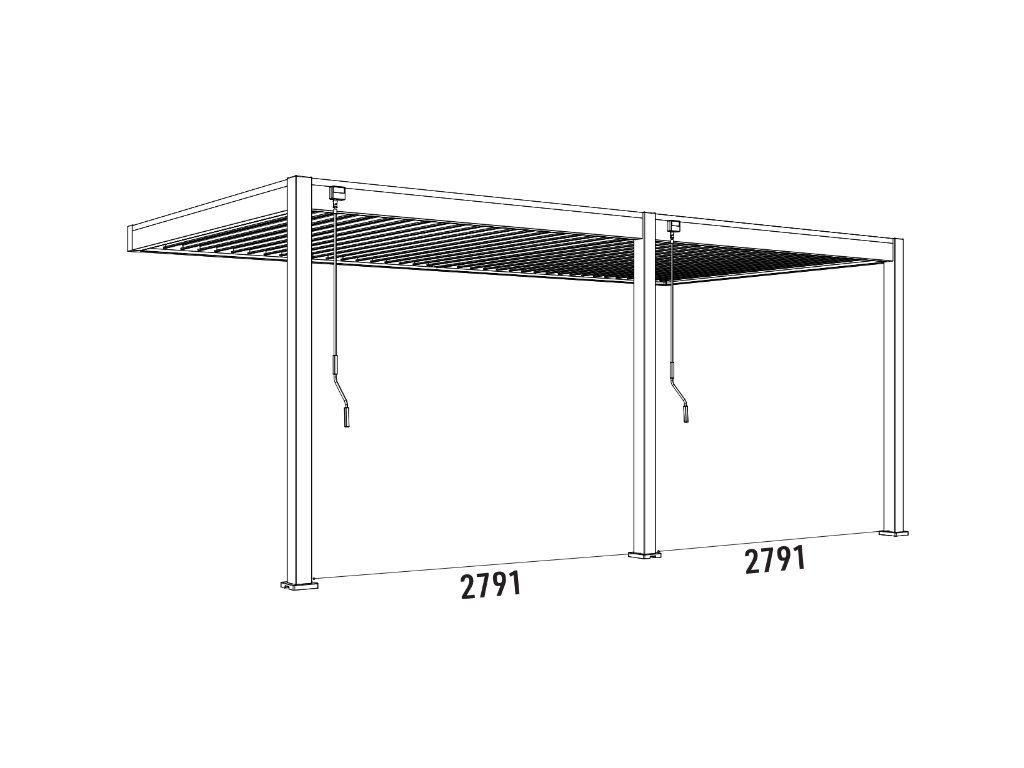 38 nastavitelných otočných dvojitých lamel (dvě vrstvy s dutým vnitřkem) Vás ochrání nejen před sluncem, ale i před deštěm. Lamely lze otáčet od 0°, kdy docílíte úplně uzavřené střechy až do 135°, díky čemuž získáte skvělou mobilitu a možnost zastínit slunce z jakékoliv strany.