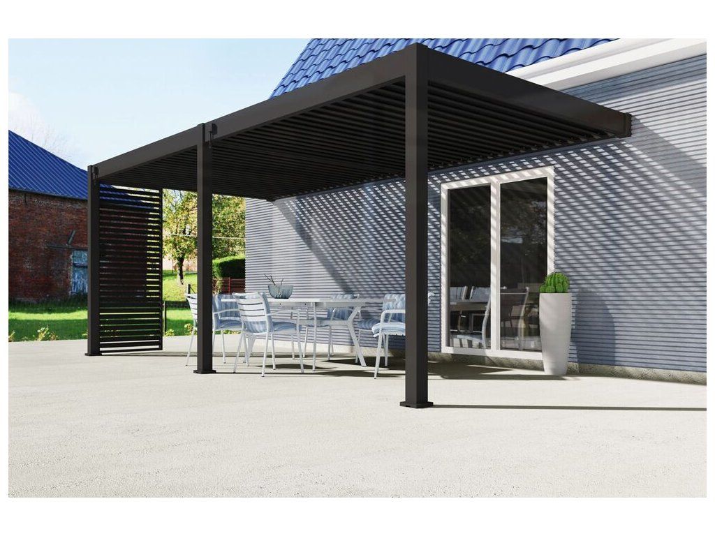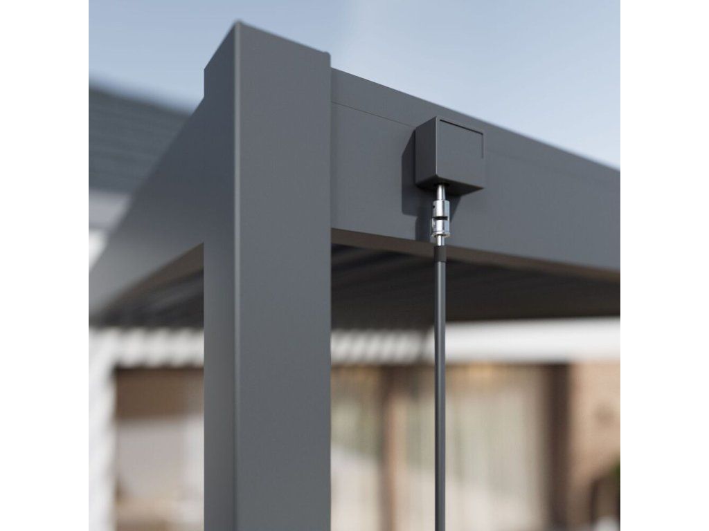 Velmi pevná a stabilní konstrukce v antracitové barvě RAL 7016, v matné povrchové úpravě se hodí do každého prostoru. Pergola je vyrobena z vysoce kvalitního hliníku, který je ošetřen práškovou barvou, což zaručuje odolnost vůči povětrnostním vlivům.
