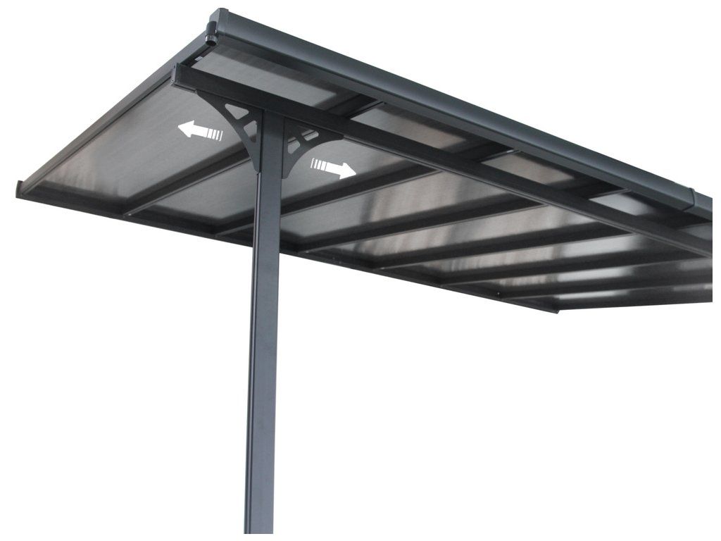 Stabilní a robustní konstrukce z hliníkových profilů a 6mm silného polykarbonátu se 100% UV ochranou.