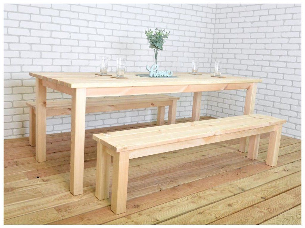 Lavice je možné uschovat pod stůl. Přírodní provedení umožňuje soupravu natřít a ošetřit dle vlastní představy.