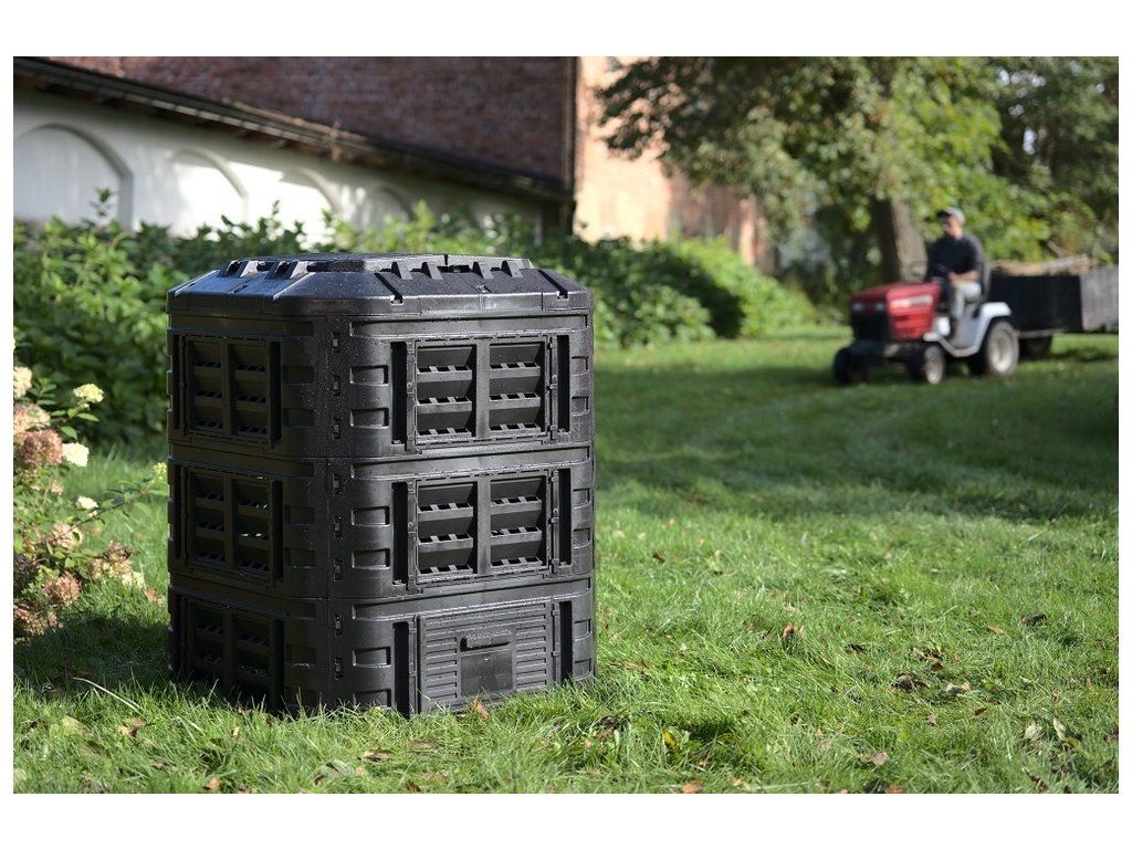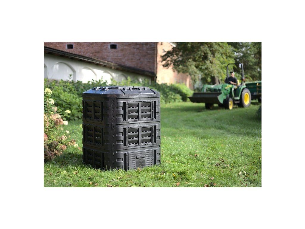 Plastový kompostér o objemu 600 L z velmi pevného polypropylenu. Konstrukce zajišťuje cirkulaci vzduchu a urychluje rozkladný proces. Součástí výrobku je víko i boční dvířka pro snadné vyjímání kompostu. Kompostér je odolný vůči povětrnostním podmínkám, UV záření a můžete ho mít venku za každého počasí -30 °C až 45 °C. Montáž je velmi jednoduchá, díky CLICK systému není zapotřebí žádné nářadí. Vyrobeno z recyklovaného materiálu.